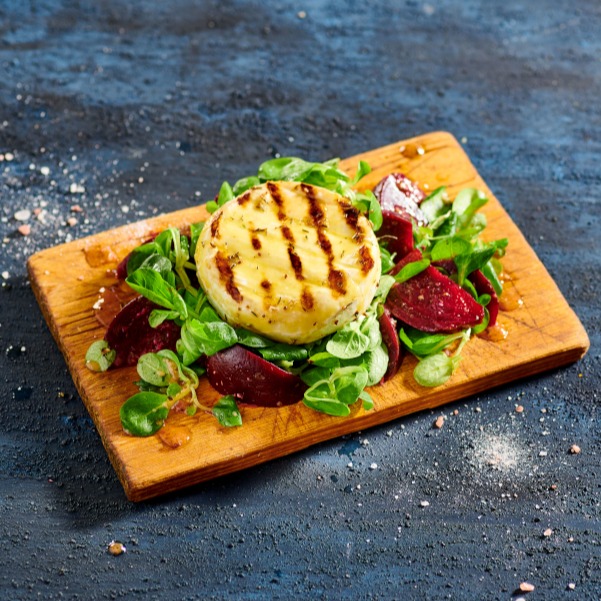Grilovaný kozí sýr se salátem z červené řepy a hořčicovou zálivkou