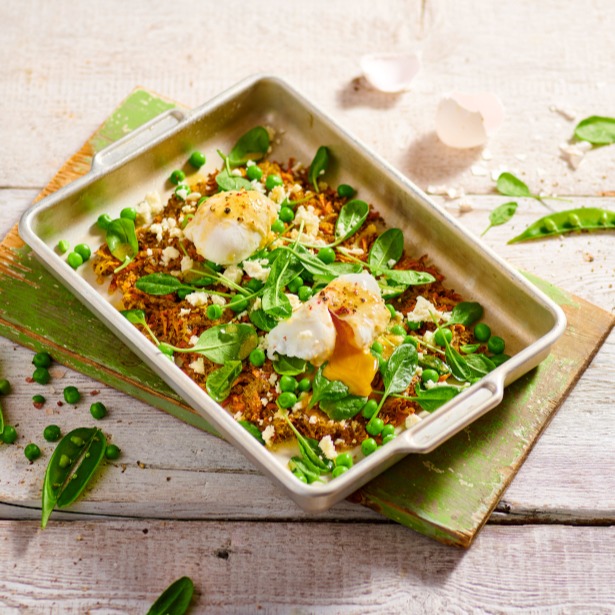 Zeleninový „bramborák“ se ztraceným vejcem