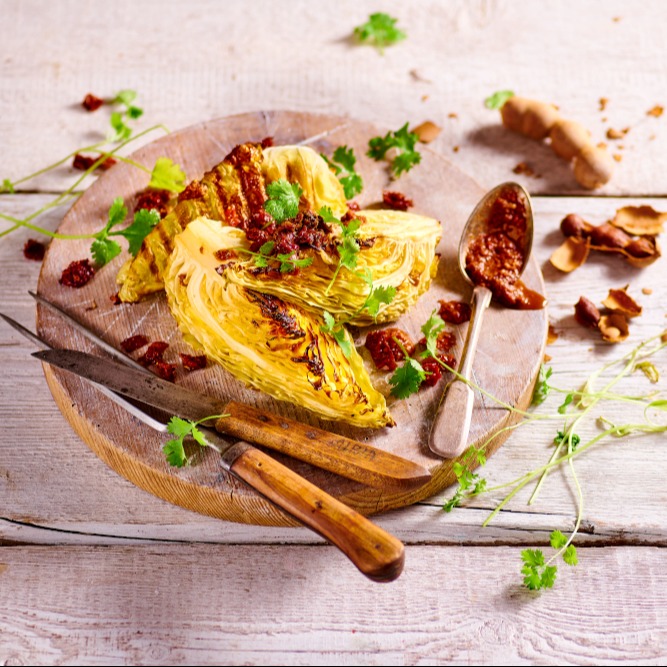 Pečené špičaté zelí s tamarindovou pastou